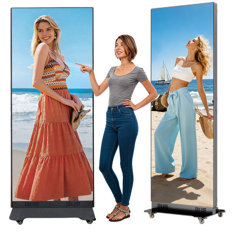 포스터 LED 디스플레이 스크린은 바닥 거치형 LED 스크린/벽걸이형 LED 디스플레이/매달린 LED 포스터 스크린 및 기타 형태와 같은 여러 고정 방법을 지원하며 실내 임시 및 반고정 장면에 적합합니다.